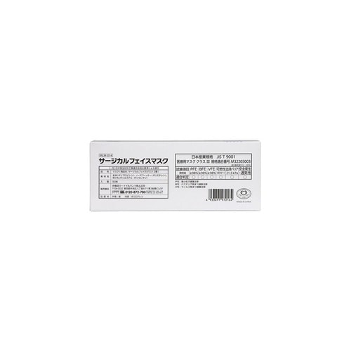 JIS T9001医療用マスク クラスIII適合品のサージカルフェイスマスク。 |