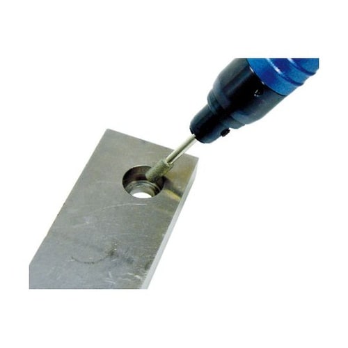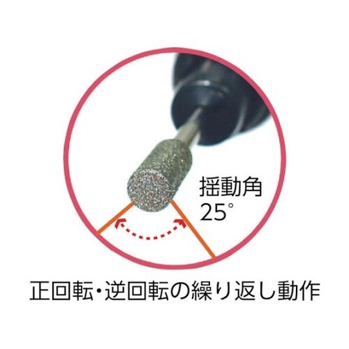 微細な加工が可能なので、精密金型の仕上げに適しています。独自の揺動運動で先端工具がワークに弾かれることがありません。狭い箇所での金属のバリ取り、面取りなどの研削・研磨作業。 |