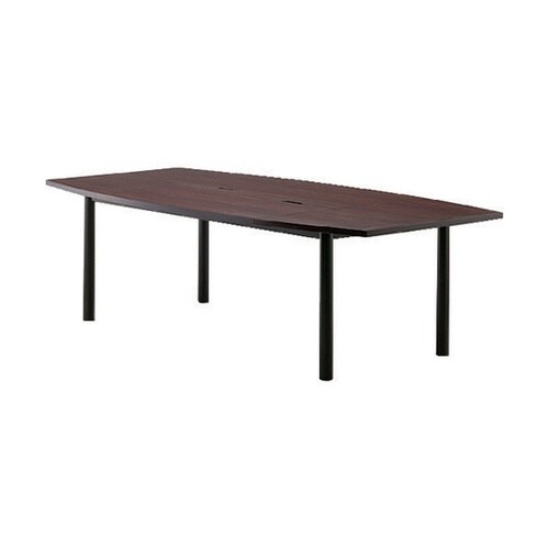 天板中央に配線ボックスがあり、PCやマイクを使った6ー8人でのミーティングに適しています。別売りの専用配線ダクトを使えば足元のケーブル類もすっきり!緩やかな曲線が落ち着きのある空間を作ります。 |