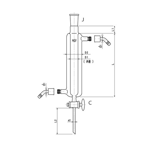 旭製作所 ジョイント付二重管式クロマトカラム(コック付) ガラスコック ウォーターコネクター仕様 Φ15L:300 3832−15/300−3L−W 1個 A02G-7118