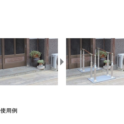 あっという間に設置完了。いろんな場所であなたを支える。ポーチ部や玄関への設置に段差昇降や歩行の補助に外に出るまでに段差があるので手すりがほしい。建替後40年超の戸建。玄関前の移動補助として使用。 |