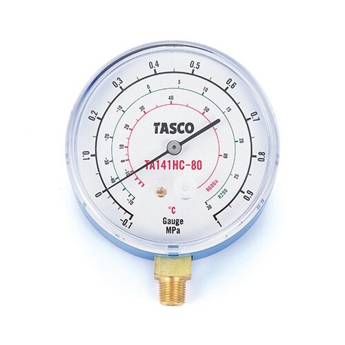 家庭用冷凍冷蔵庫用として2003年度から各機器メーカーに採用された炭化水素HC系(プロパン、イソブタンなど)冷媒用圧力計です。 |