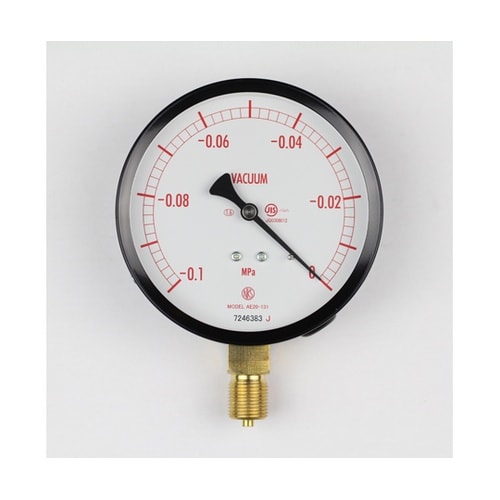 大きさ(mm):Φ100 | 形状(取付):立形A枠 | 接続:G3・8B | 材質:黄銅 | 性能:ナシ | 圧力レンジ:MPa_−0.1〜0 | …