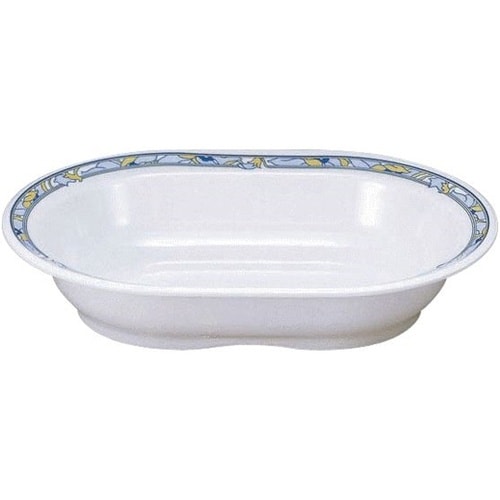 定番シルエットのカレーベーカー。パスタにもぴったり。帯状にアレンジされたブルーの花が小粋な印象です。リムがあって持ちやすく、スタッキング性抜群です。 |
