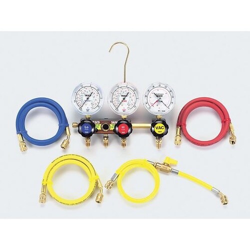 タスコ R404A R407C R507A R134a用サイトグラス付スリーゲージマニホールドキット TA124−3G 1セット A02G-8370