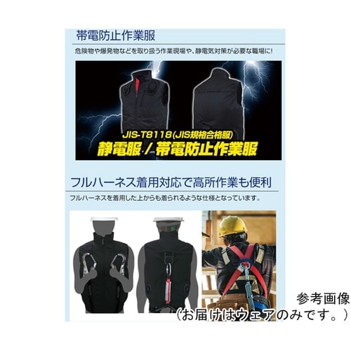 7.4V/22V 胸スイッチ式 空調ベスト 静電服(帯電防止作業服/JIS−T8118適合品)服地のみ ブラック LL−XL MESH−BR−T8118−1 1着