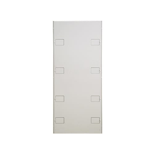 SSR2シリーズ用の側板です。連結時に使用します。窓をスライドさせ開口することで、隣のラックへの配線ができます。全開、半開、全閉等の任意の位置でねじ固定できます。 |