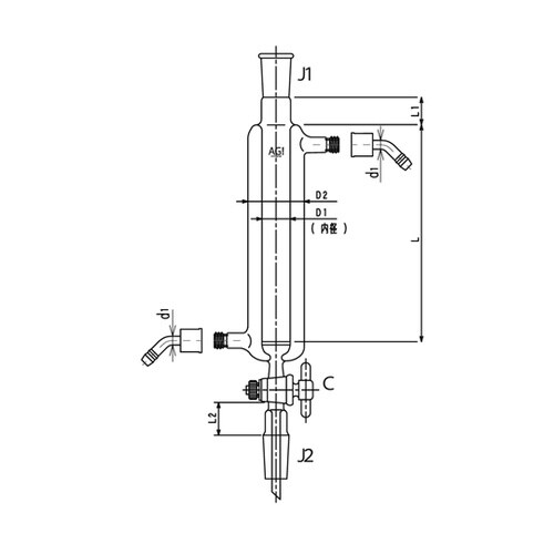 ジョイント付二重管式クロマトカラム(コック・フィルター付) PTFEコック ウォーターコネクター仕様 Φ40L:300 3846−40/300−5L−W 1個