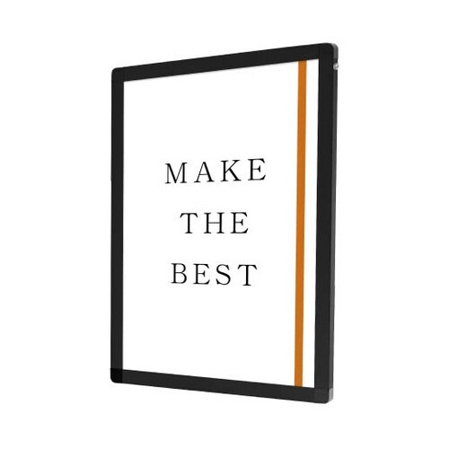 【ポスターの交換方法】▼ポスターの交換は、本体上部の左右にあるビスを取り外し、上辺のフレームを引き抜いてアルミ複合板とアクリルカバーの間にポスターをセットするだけです。 |