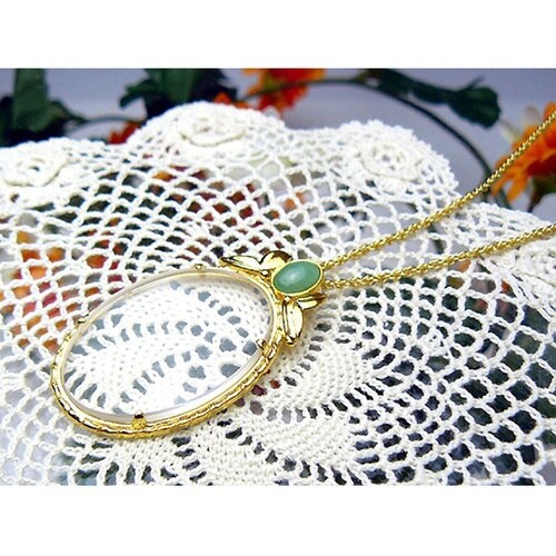 母の日・敬老の日のプレゼントに最適天眼鏡付ネックレス!!その名もペンダントルーペ。おしゃれな宝石付で国産の安心丁寧仕上!!レンズは高級白ガラスレンズを使用しており、鮮明に文字を見ることができます。 |