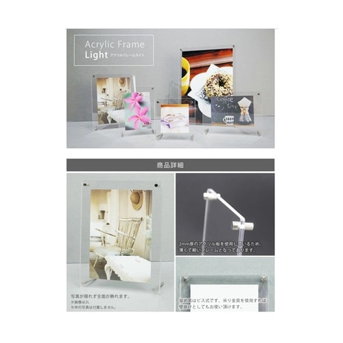 軽くて薄いアクリルフレーム。写真全面を楽しむことができます。 |