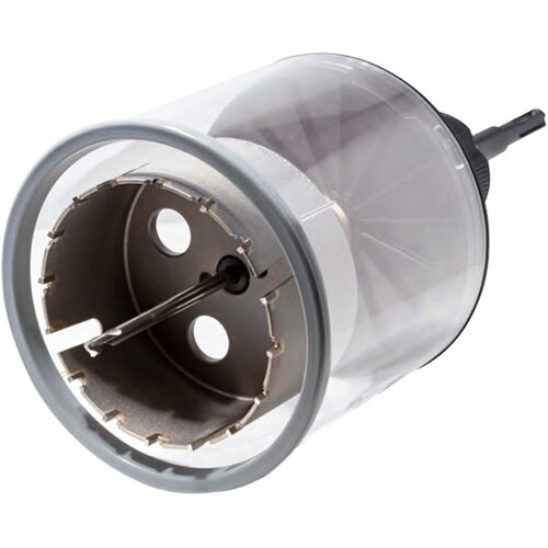 粉じんをまき散らさないクリーンなホルソー。エアコン・ダウンライト・換気扇工事に適しています。透明防じんカバーにより、穴あけ時の粉じんかぶりがありません。 |
