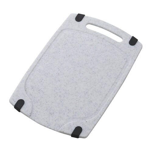 水切れが良いスロープ付きのLサイズまな板です。汁漏れ防止の溝でキッチン周りが汚れにくいです。溝付きの面とフラットな面の両面使いが出来ます。ラバー脚付きで滑りにくいです。 |