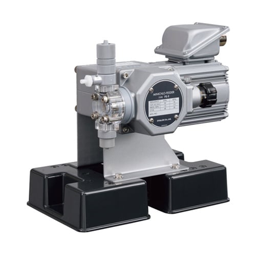 屋外設置が可能なポンプギヤードモータ(三相200V、0.1kw)を駆動源とするダイヤフラム・ポンプです。メンテナンスが容易なグリース潤滑方式を採用したポンプです。 |