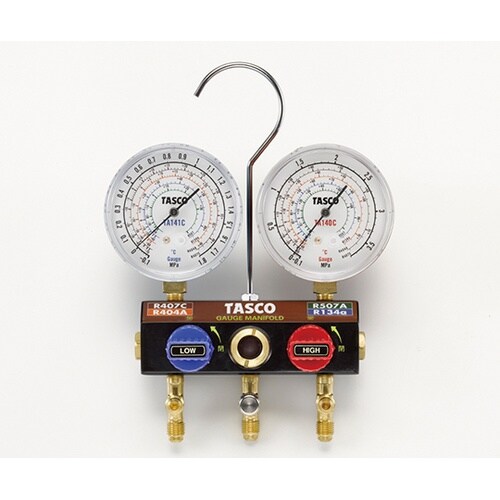 タスコ R404A R407C R507A R134a用 ボールバルブ式ゲージマニホールドキット TA124WH−2 1個 A02H-6046