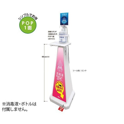 電源不要で施設や店舗の出入口に設置する消毒液専用スタンドです。出入口の必需品である手指消毒液に、より存在感を与えます。鮮やかなフルカラーデザインで、お客さまに好印象を与えます。 |