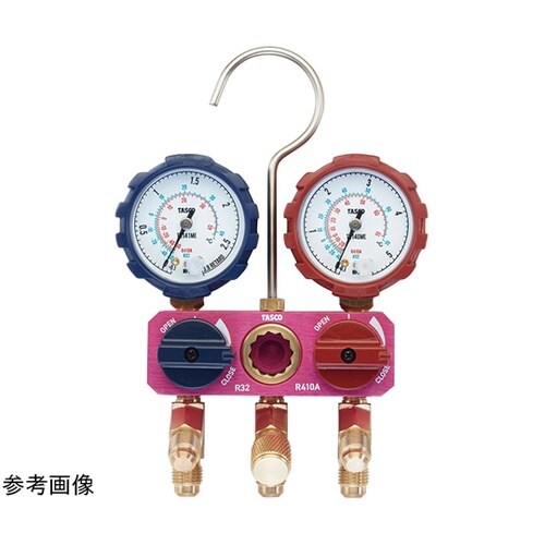 手のひらサイズなのに大きなサイトグラスを搭載したゲージブーツ付マニホールド。ボールバルブ式開閉ハンドルバルブの開閉がとてもしやすいです。バルブの開き具合が目視でわかります。 |