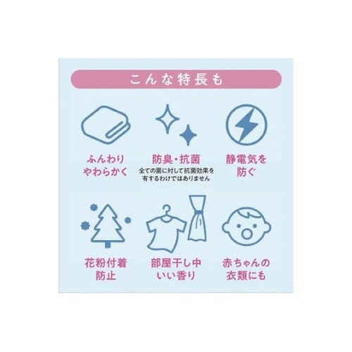 咲きたてアロマ製法で好きな香りがずっと変わらないアロマ柔軟剤。防臭・抗菌効果で、衣類につくイヤなニオイを抑え、部屋干し中もいい香りが楽しめる。華やかで可憐な「フローラルブーケアロマの香り」。 |