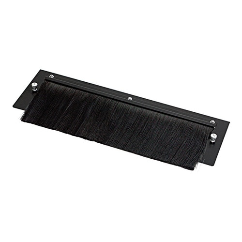 ラック下面からのほこりの侵入を防ぎながら入線が可能です。スカート部のブラシの毛の間を通すことで、隙間なく下面への通線を可能にします。床下への小さな部品等の落下を防止します。 |