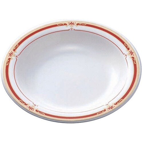 定番サイズのシンプルなフォルムのスープ皿。シンプルな白磁にクラッシックなレッド&ゴールドラインが優美。リムがあって持ちやすく、スタッキング性抜群です。 |