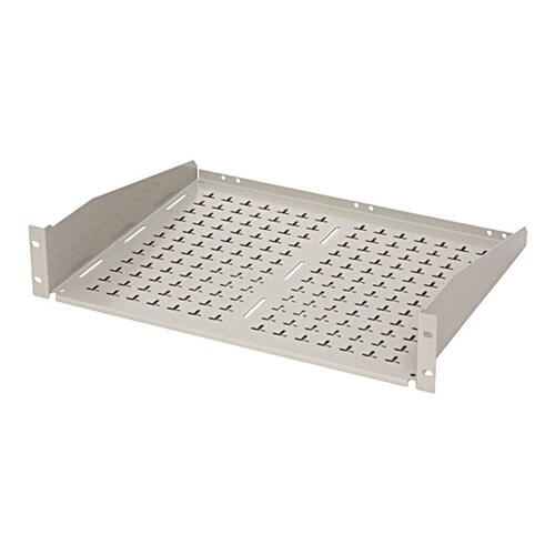 19インチマウントタイプの収納棚でEIA規格に準拠しています。(ただし1Uの機種は外寸は準拠していませんが、JIS規格にも取付可能です。)T字形の穴が空いているため、放熱効果があります。 |