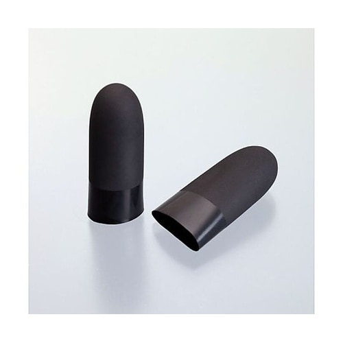 原料に十分なカーボンを配合し、指サックの表面だけでなく厚み方向に対しても導電性を持たせています。ストレートタイプ、口元は長時間の装着でも疲れにくいカットタイプです。 |