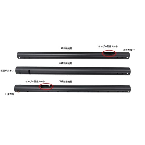 天吊りモニターテレビスタンド。天吊り方式なので、接地面積を考えずに設置でき、省スペース化が実現できます。すっきりと美しい・ケーブルをセンターチューブに通すことにより見栄えがとても綺麗に見えます。 |