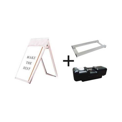 ポスター用スタンド看板パンフレットケース付 A1ロウ両面ホワイト(屋内用) ウエイトアーム・水タンクセット PSSKP−A1LRW−3SET 1個