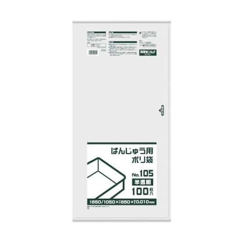 品名:ポリ袋105号 | 色:半透明 | 縦(mm):650 | 横(mm):1050(650) | 厚さ(mm):0.01 | 縦×横(マチ)(mm…
