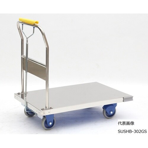 金沢車輌 小型静音ステンレス台車 ハンドル固定式 ハンドブレーキ付 SUSHB−102GS 1台 A02J-7614
