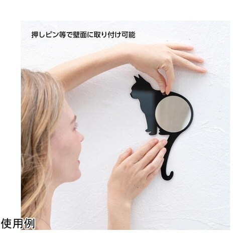 部屋を癒し空間に。可愛い猫のシルエットのハンドミラー 思わず顔がほころぶ癒しのミラー。大人可愛いデザインがお部屋を華やかな印象にします。押しピンで壁やドアに取り付けができます。
