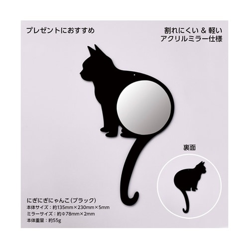 堀内鏡工業 ネコ形壁掛けミラー Cat Mirror にぎにぎにゃんこ BK CM−05 1個 A02J-9119