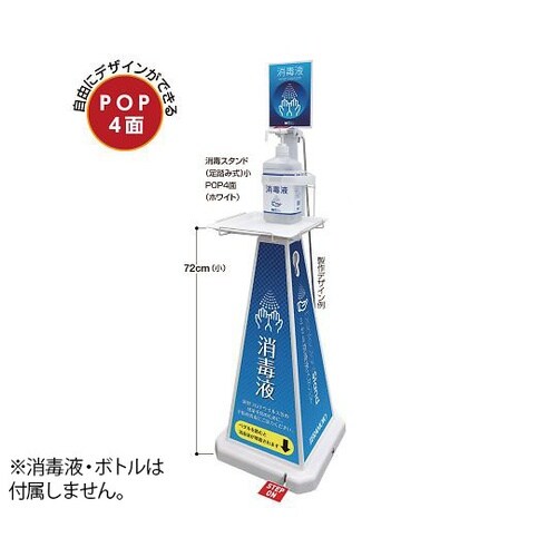 電源不要で施設や店舗の出入口に設置する消毒液専用スタンドです。出入口の必需品である手指消毒液に、より存在感を与えます。鮮やかなフルカラーデザインで、お客さまに好印象を与えます。 |