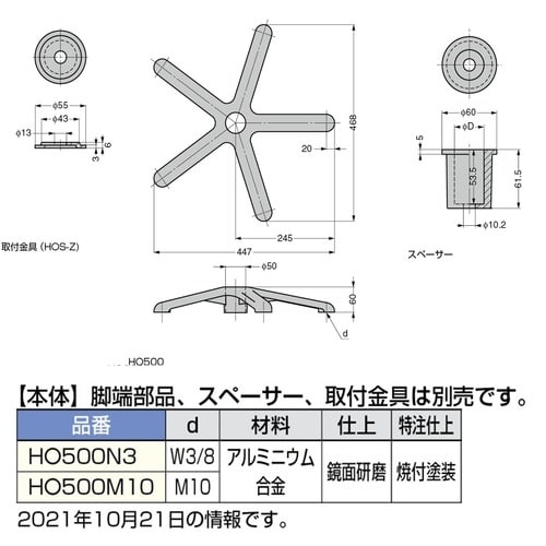 本体は軽くて頑丈なアルミニウム合金製で、リサイクルに適しています。支柱穴は、先端がテーパー形状のφ50.8の支柱に対応しています。医療機器、OA機器、家電機器など。 |
