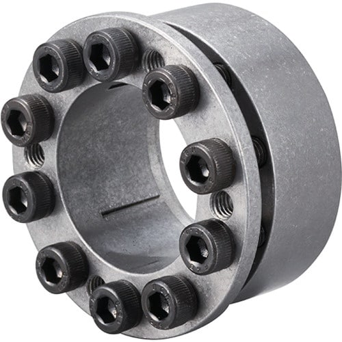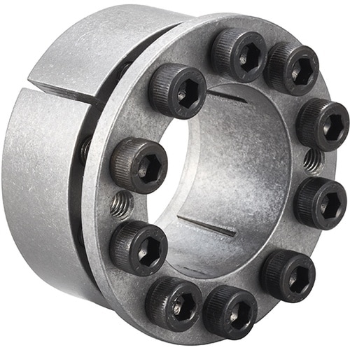 インナーリンク、アウターリンク共スリット入りで、軸交差に対応できます。ボス径の小さいスプロケット、タイミングプーリ等に使用できます。