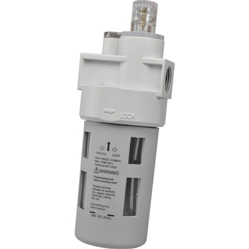 空気中に適量の潤滑油を混入させ、空気圧機器の動きを円滑にし、さらに摩擦を防ぎます。レギュレーターの後にセットします。