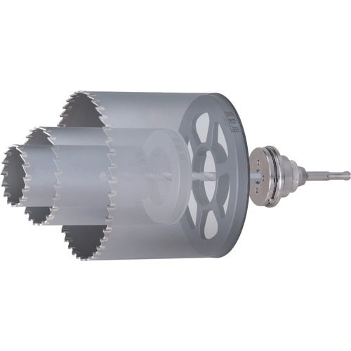 硬質壁材等に最適な刃型形状で、精度と能率を両立させた振動用のコアドリルです。刃先に小さな振動と回転を与え、被削材を砕きながら切削するため、スピーディーな穴あけが可能です。 |