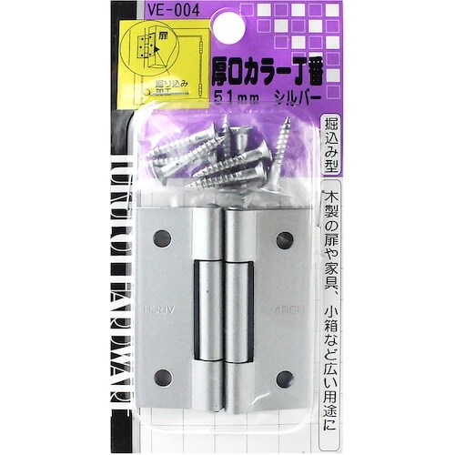 耐久性、耐候性に優れています。木製の扉、家具などにしっくりなじみます。木製の扉、家具、小箱などに。(注:51mm以下は家具、小箱用になります。