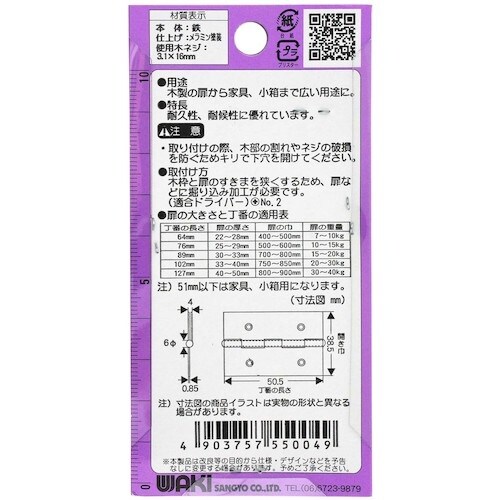 WAKI 厚口カラー丁番 VE‐004 51mm