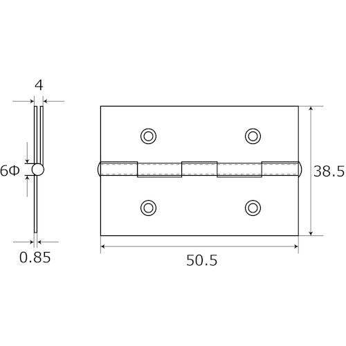 全長(mm):50.5 | 幅(mm):38.5 | 厚さ(mm):0.8 | ねじ穴数:4 | D2(mm):6 | その他仕様:2枚入り | 仕上…