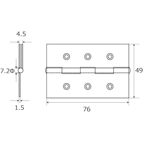 全長(mm):76 | 幅(mm):49 | 厚さ(mm):1.5 | ねじ穴数:6 | D2(mm):7.2 | その他仕様:2枚入り | 仕上げ:…