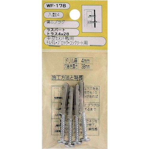 ドリル径(mm):4穴 | あき深さ(mm):38 | タイプ:トラス4X28(ラスパート) | 材質・仕上げ:ナイロン | 材質・仕上げ:鉄ラスパー…
