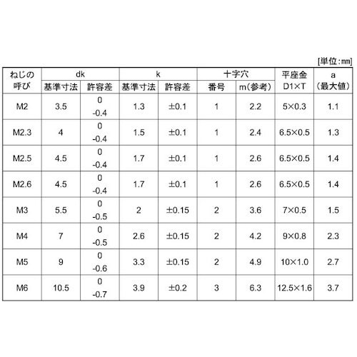 表面処理:生地(または標準) | 径×長さ:M2.5×16 | 材質・仕上げ:ステンレス(303、304、XM7等) | 単位:1箱(1000本)