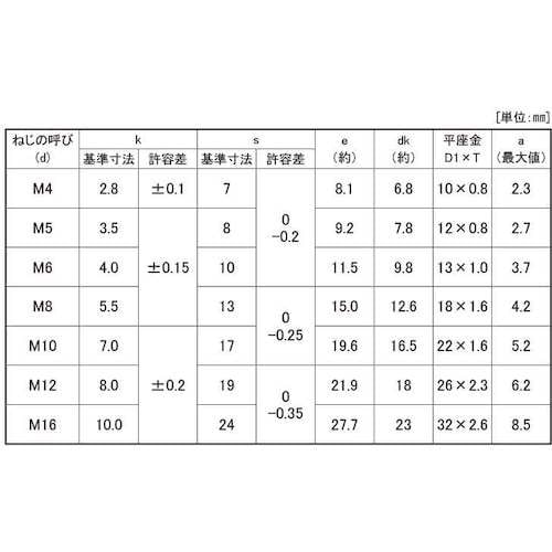 寸法(mm)d:M12 | 寸法(mm)L:45 | 材質・仕上げ:ステンレス(303、304、XM7等) | 単位:1箱(40本)