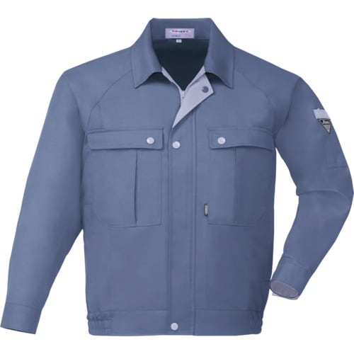 伸縮性に優れたストレッチ素材にジップアップ仕様、胸の左右に大きなフラップポケットを採用したブルゾンです。衿元にのぞく前タテ裏の配色デザインが小さなお洒落です。帯電防止作業服です。 |