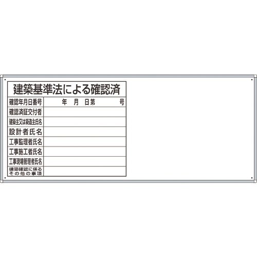 表示内容:建築基準法による確認済 | 取付仕様:ビス止め | 縦(mm):300 | 横(mm):760 | 厚さ(mm):9 | 取付穴径(mm):…