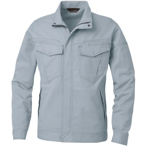 綿100%防汚ストレッチ作業服です。国産生地を使用し、肘・ひざのバイアスカットで動きやすいです。肌触りが良く吸湿性のある綿100%素材です。火を扱う現場にも対応した仕様です。 |