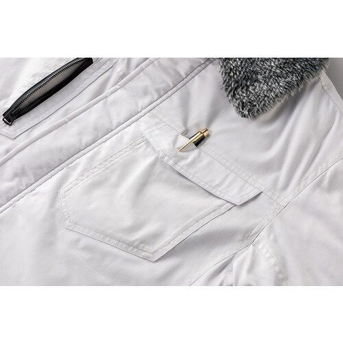 衿は取り外し可能なボア仕様、背中裏には保温性の高いアルミプリントを採用した防寒ジャンパーです。 |