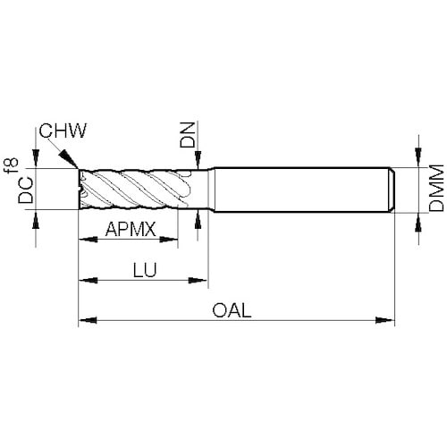 金型加工用の高精度タイプの仕上用エンドミルです。48HRCまでの硬度の被削材の加工が可能です。 |