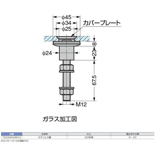 スパイダーロッドと組み合わせて使用します。ガラスは正面から六角棒スパナ(呼び5)で固定するため、ポイントフィックスを固定後、ガラスの取り付けができます。 |